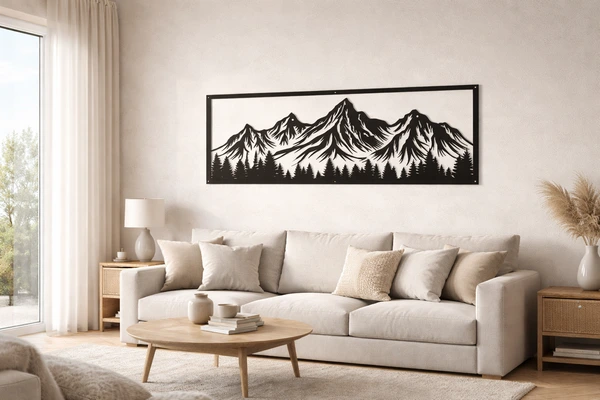 Metalowa panorama górska to nowoczesna dekoracja ścienna, która w subtelny sposób wprowadza do wnętrza motyw natury. Minimalistyczna linia górskich szczytów wykonana z metalu łączy surowość materiału z elegancją prostej formy, tworząc ponadczasowy element aranżacyjny.